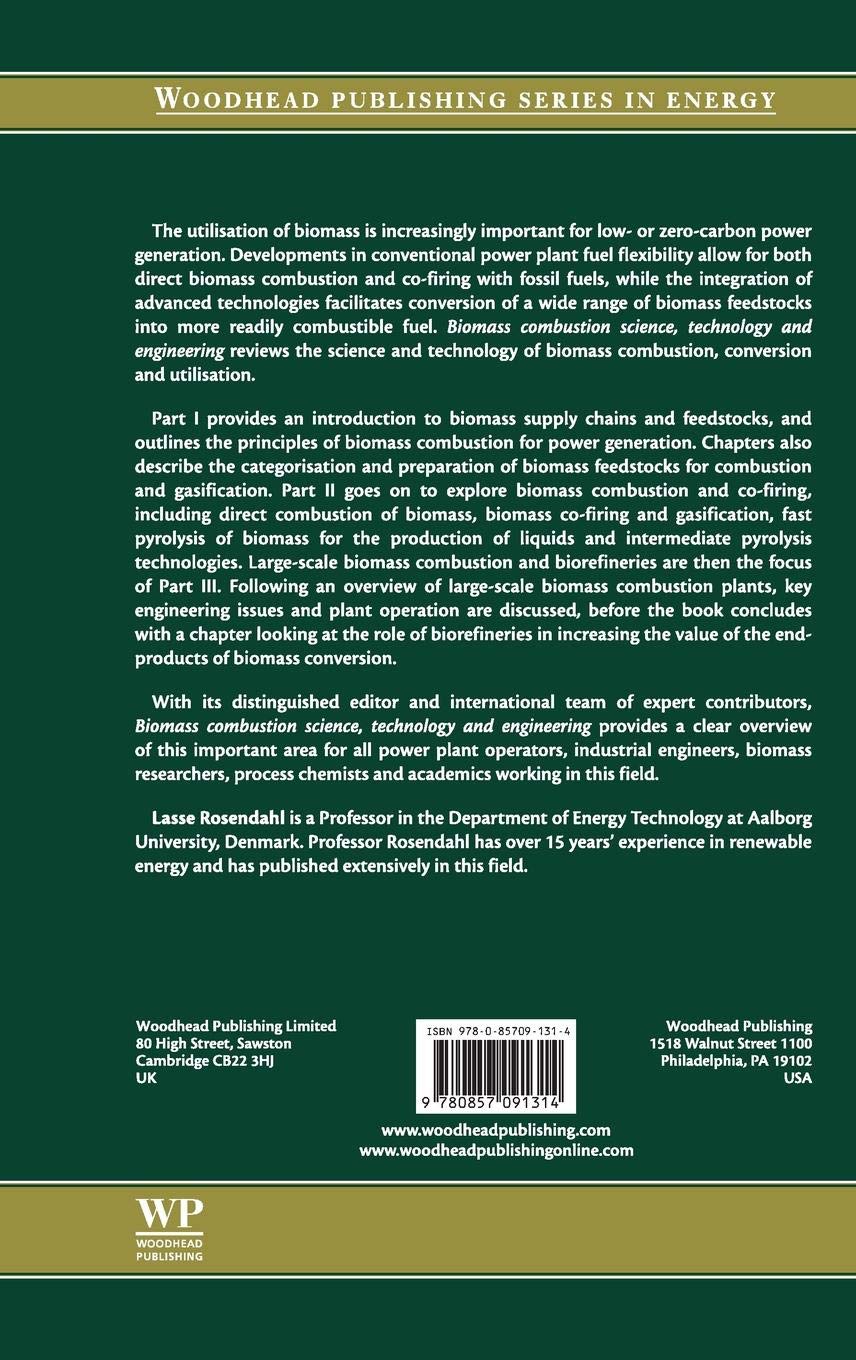 With its distinguished editor and international team of expert contributors, Biomass combustion science, technology and engineering provides a clear overview of this important area for all power plant operators, industrial engineers, biomass researchers, process chemists and academics working in this field.